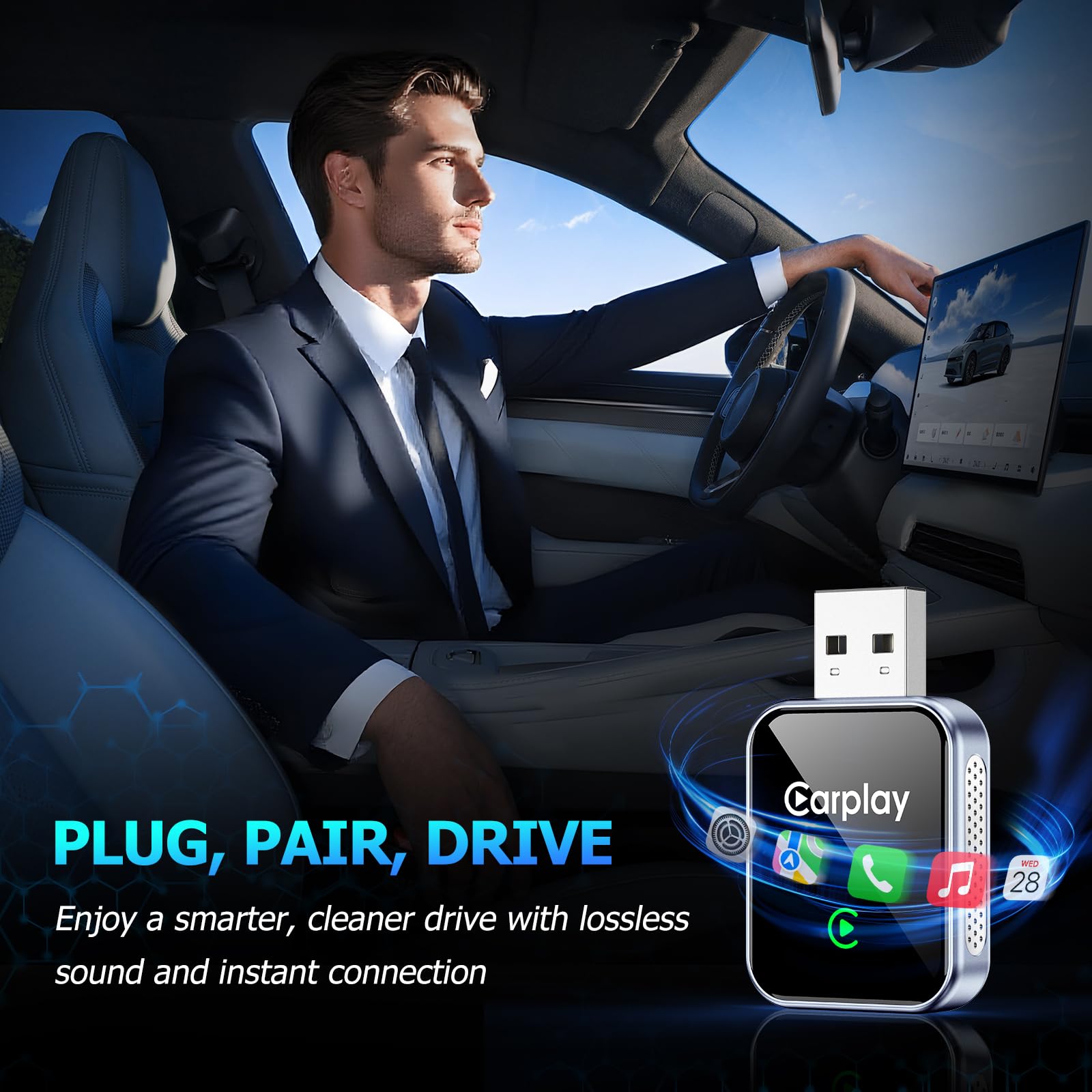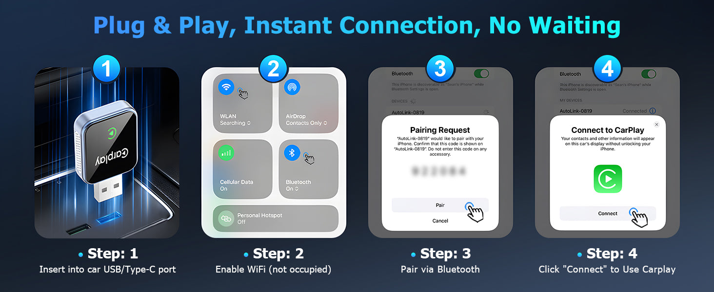 Aerlien Wireless CarPlay Adapter is the ultimate plug and play solution for a cable-free driving experience.